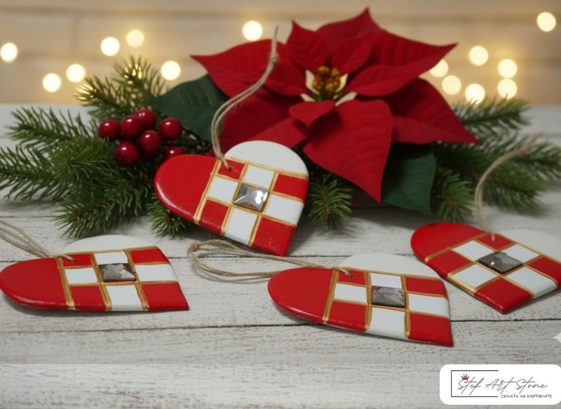 - $100\% Ръчна Изработка: Всяко КОЛЕДНО СЪРЦЕ е уникално – моделирано и рисувано индивидуално. Купувате ПРЕМИУМ АРТ, който гарантира неповторимост и висок стил.