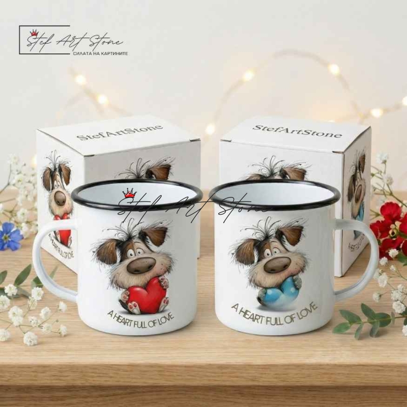 - 📦 Двойна Радост (2 Кутии): Не получавате просто две чаши в плик. Всяко канче е опаковано в индивидуална кутия със своя дизайн (едната с червено сърце, другата със синьо). Това прави разопаковането истинско преживяване!