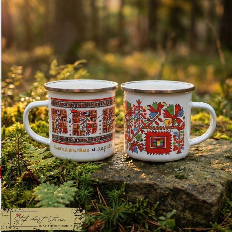 Защо да избирате, когато можете да вземете и двете? Този комплект събира на едно място пъстротата на българския фолклор. Той е създаден за споделени моменти – сутрешно кафе с любимия човек на верандата или горещ чай с приятел на върха на планината.