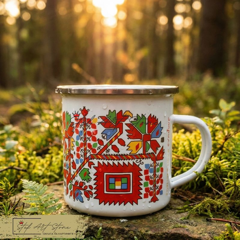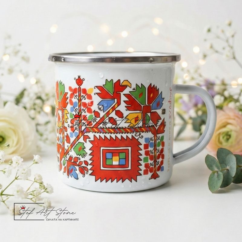 - ✅ Материал: Емайлиран метал със сребърен ръб.