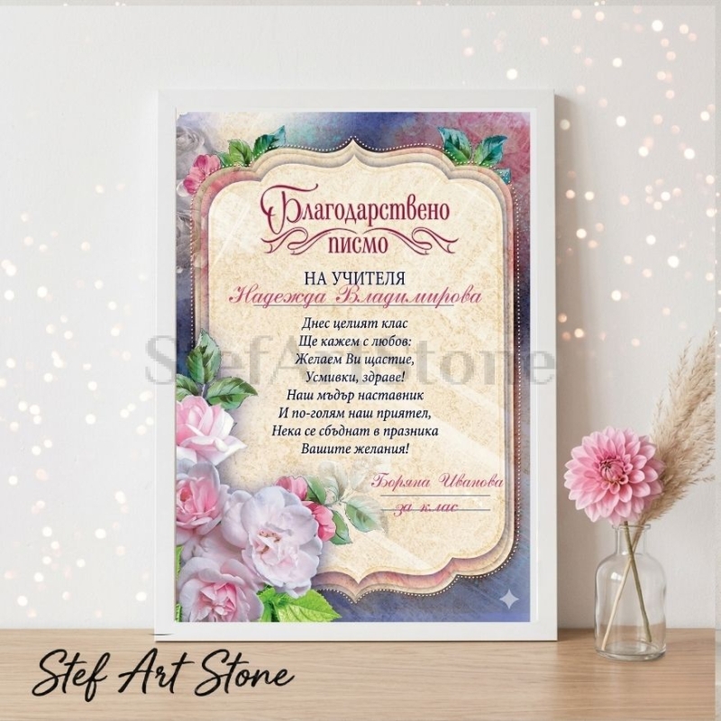 Търсите стилен и смислен подарък, с който да зарадвате любим преподавател? Този персонализиран постер с рамка "Благодарствено писмо" е перфектен избор за 24-ти май, завършване на учебната година или Деня на учителя.