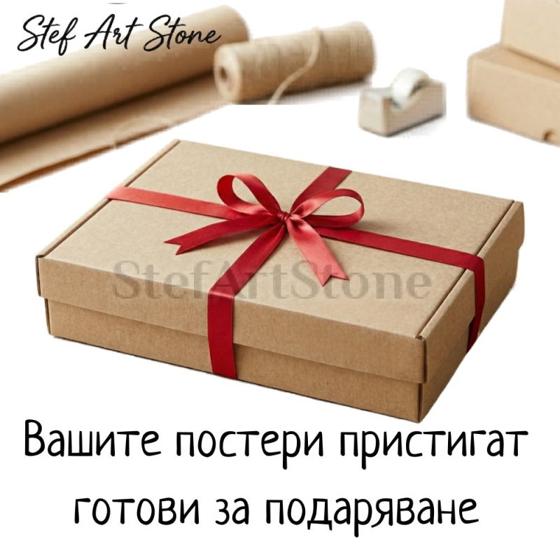 - 🎁 Готов за поднасяне: Постерът пристига отпечатан с премиум качество, поставен в бяла рамка и опакован в стилна крафт кутия с панделка.