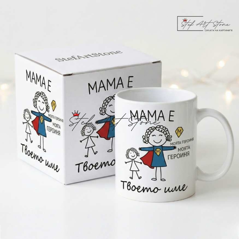 - ✍️ Персонализация: Добавете своето име под посланието "Мама е моята героиня".
