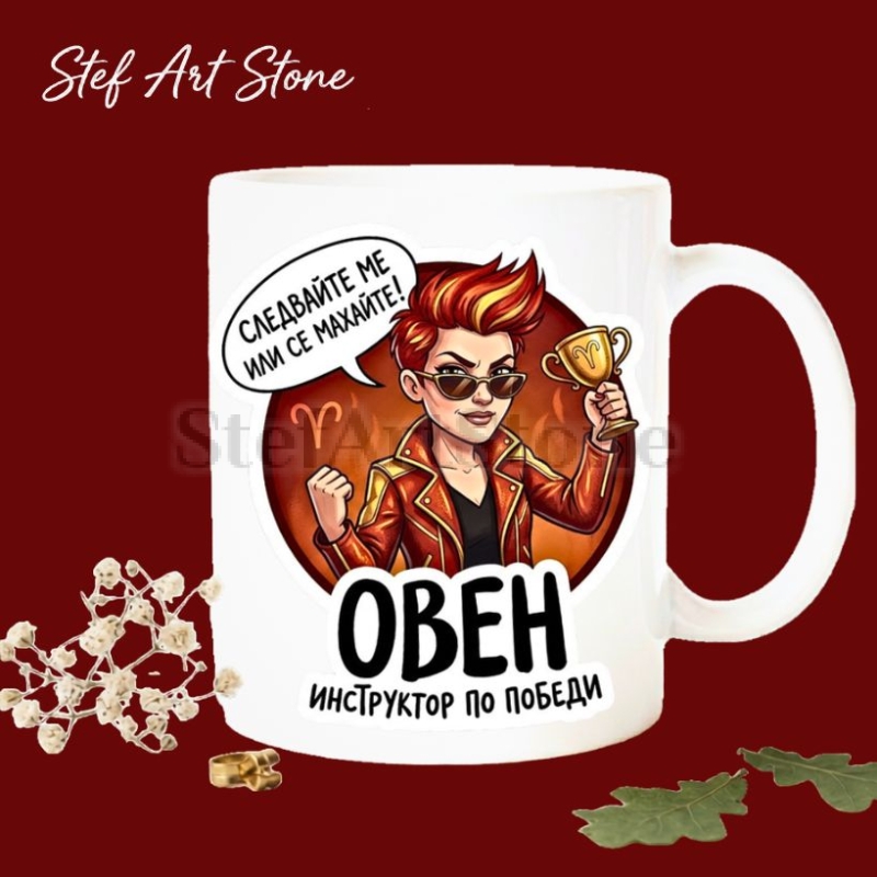 Всяка дама, родена под този огнен знак, е изявен лидер. Нашата чаша зодия Овен улавя точно тази непоколебима увереност. Със смелата илюстрация на жена, държаща трофей, и посланието "Инструктор по победи", вие подарявате не просто съд за напитки, а ежедневно признание за нейните успехи. Това е оригинален подарък жена, който показва недвусмислено, че познавате и цените нейния състезателен дух.