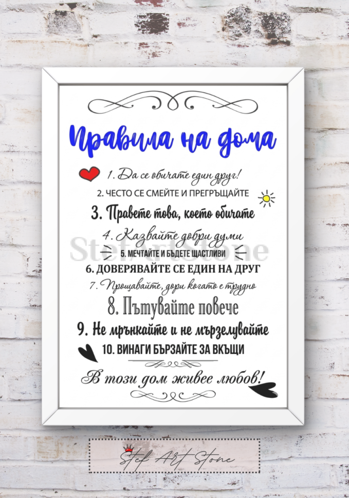 Постер с Рамка "Правила на Дома" | Подарък за Семейство и Нов Дом