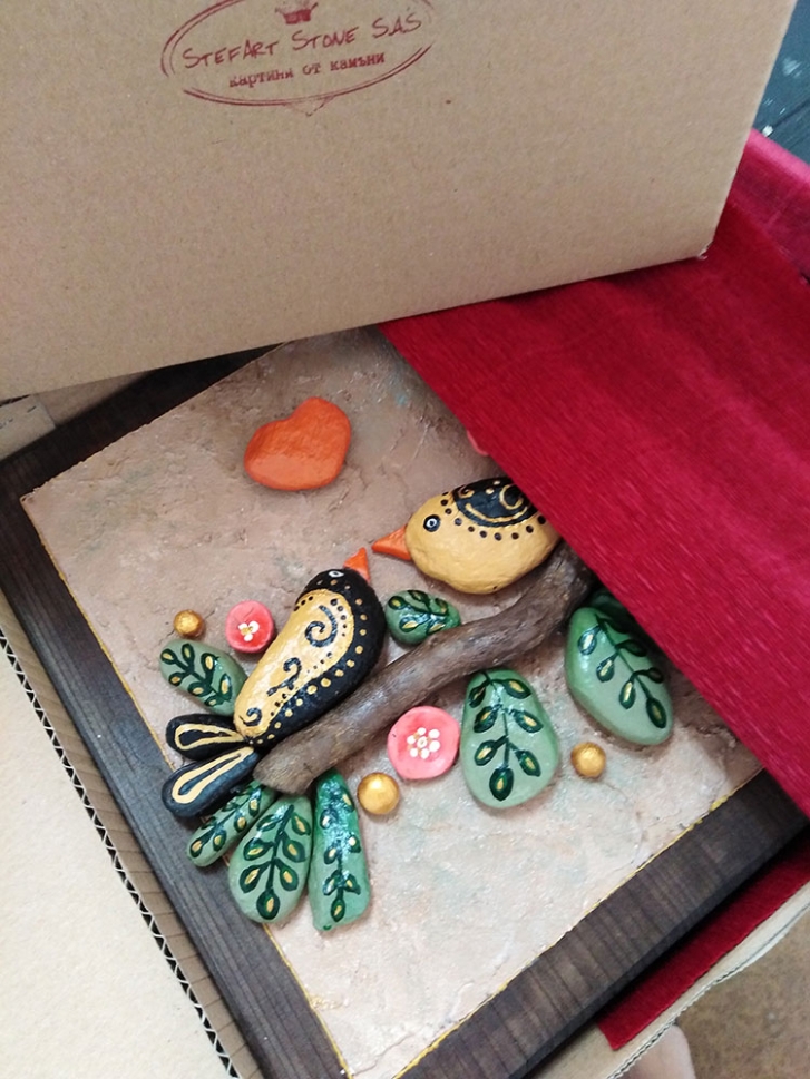 Изработена от рисувани камъни и ръчно изработени глинени елементи