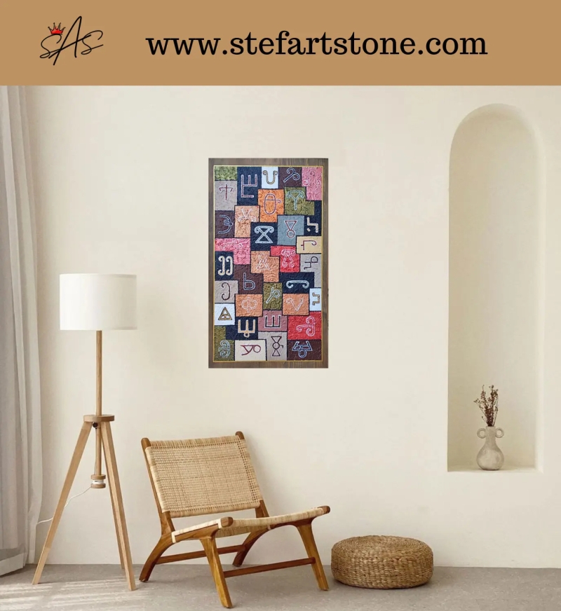 Уникална картина пано с глаголица, изработена върху дървена основа и релефна паста.