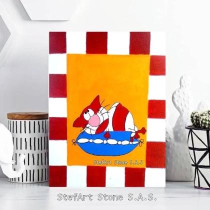 Описание на продукта: Смела и игрива, тази ръчно рисувана картина с червена котка върху жълт фон ще добави цвят и хумор във вашия дом. Със своите наситени тонове и уникален стил, тя ще привлече погледите на всички посетители.