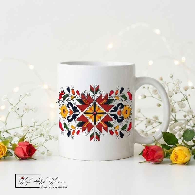 Керамична чаша с българска шевица Живот и плодородие | Чаши Български Шевици