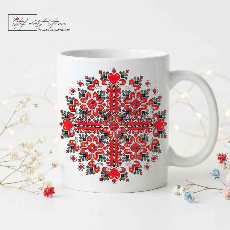 Керамична чаша за кафе с българска шевица „Елбетица“ | Чаши Български Шевици