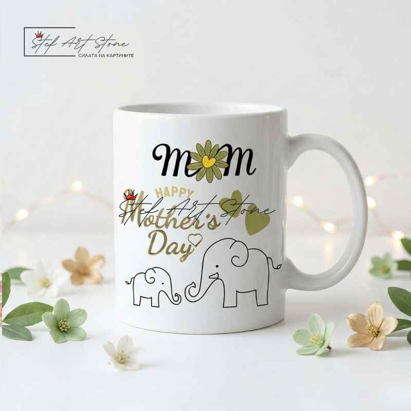 С нежен дизайн на майка и малко слонче, символизиращ топлата връзка между майка и дете, тази чаша е идеален подарък за Деня на майката или всеки специален повод.