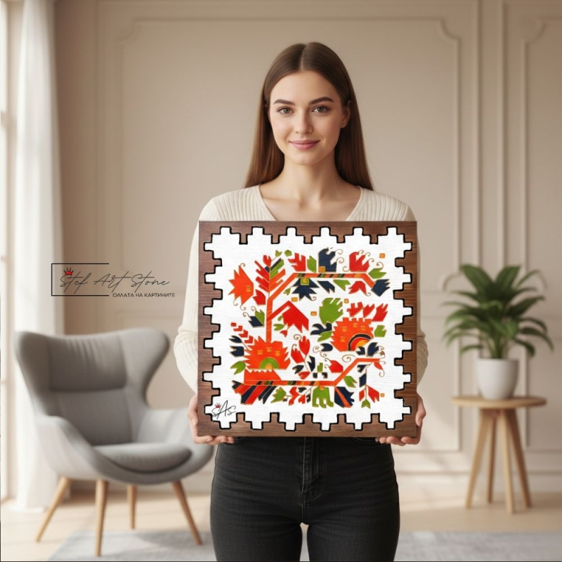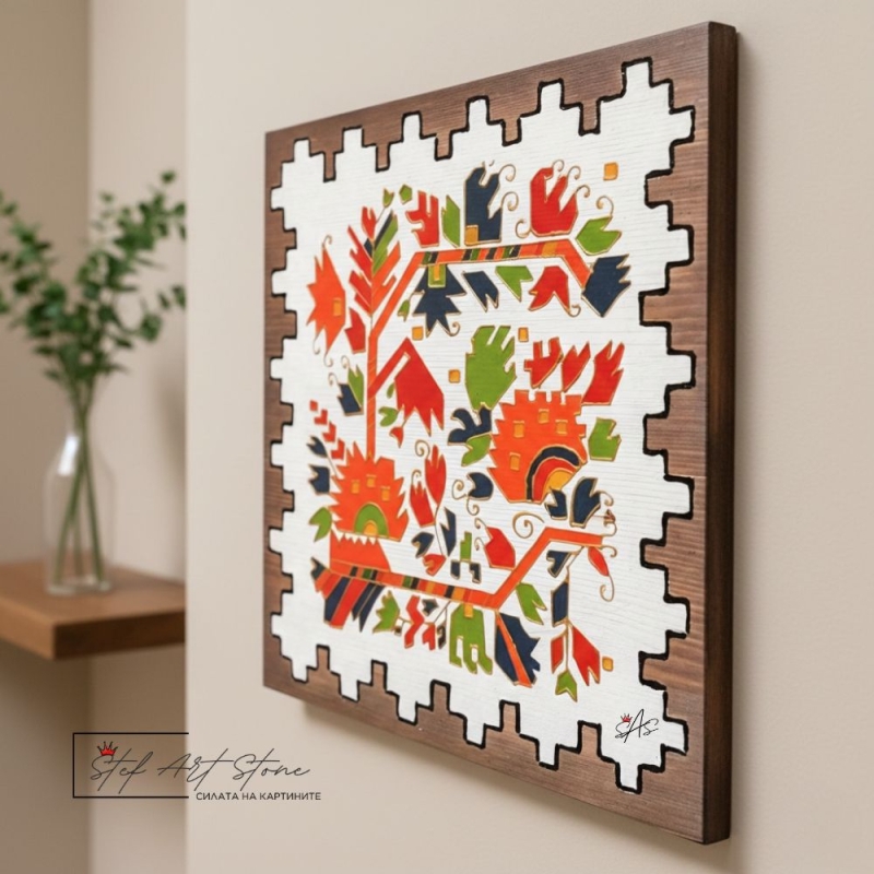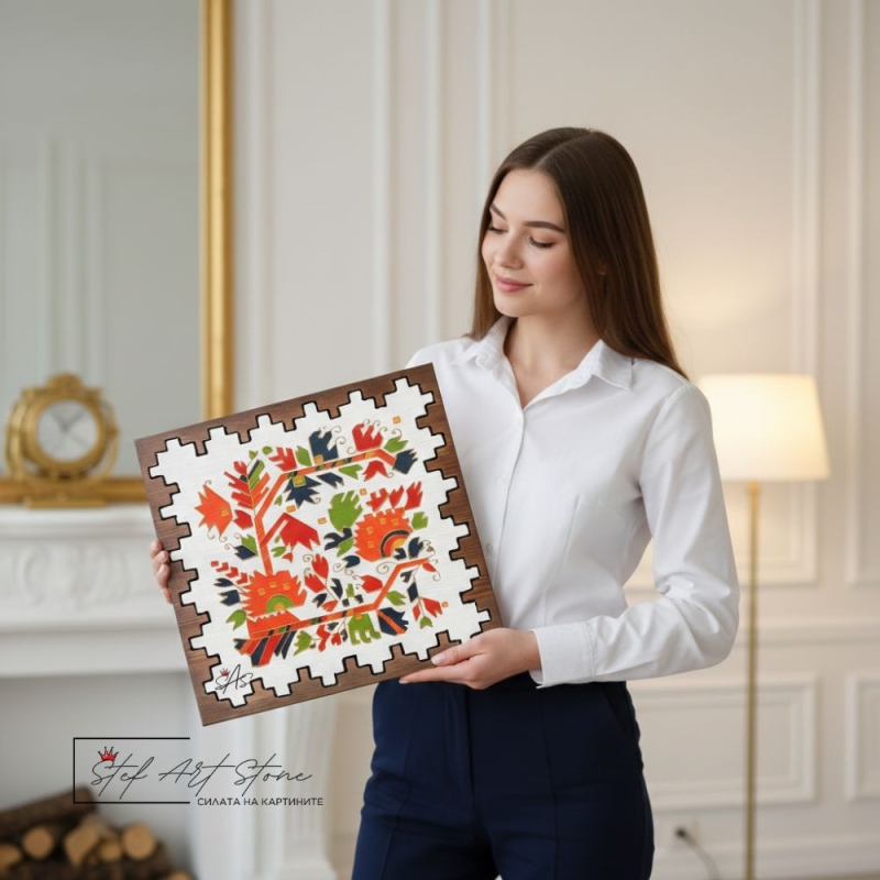 Нашите ръчно изработени картини от дърво с мотиви от български шевици са перфектният баланс между вековна традиция и съвременен интериорен дизайн.