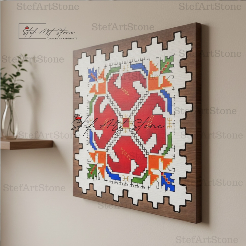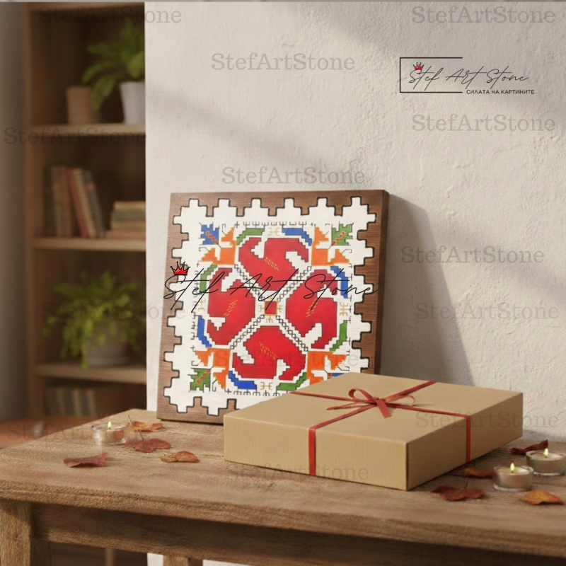 Точно този дух е уловен в модела "Огнен Вихър". Това не е просто бродерия, пренесена върху дърво – това е запечатана енергия.