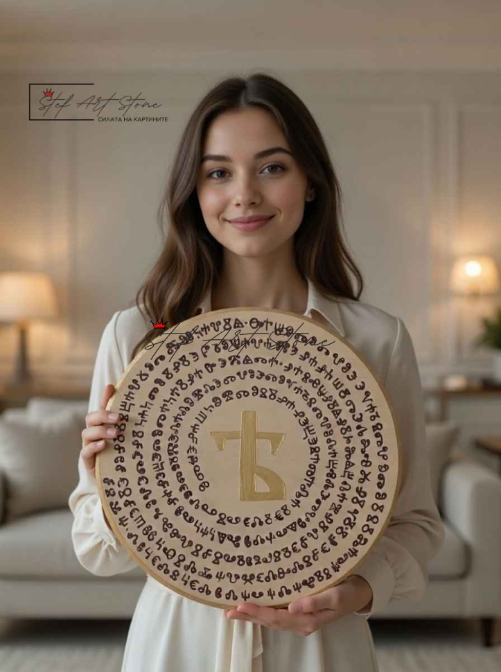 Тази творба не е просто декорация за стена. Тя е енергиен център за твоя дом. Върху естествена дървена основа, носеща топлината на природата, е пресъздадена най-силната християнска молитва – "Отче наш", но не както сме свикнали да я виждаме, а чрез свещените знаци на Глаголицата.