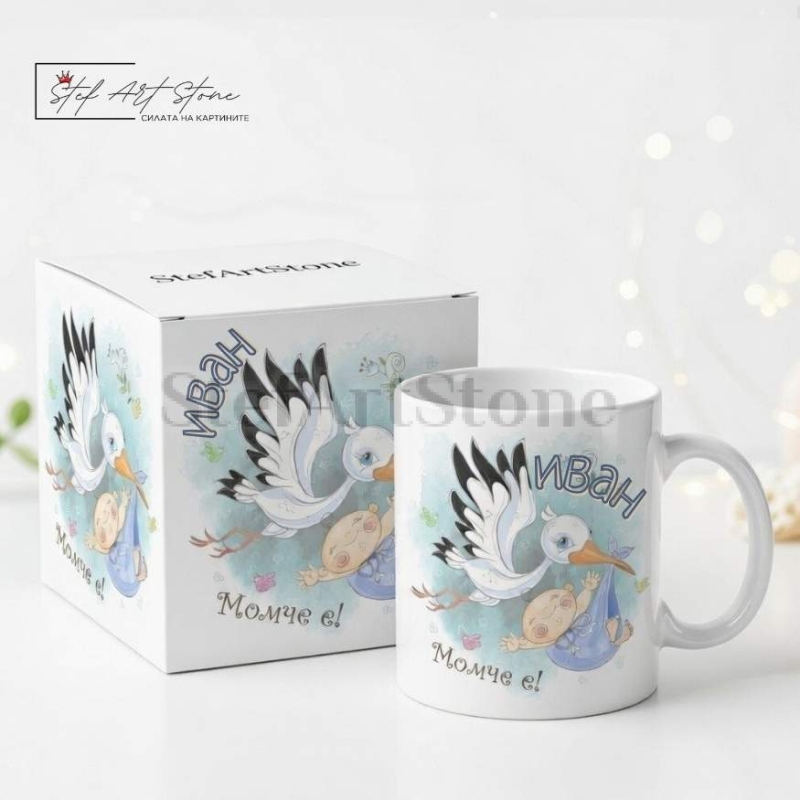- ✍️ Чаша по поръчка: Уникална възможност да изпишем името на новороденото момченце (напр. ИВАН), превръщайки продукта в безценен семеен спомен.