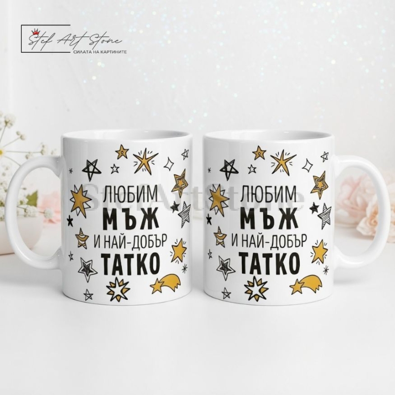 Дизайнът е истинско попадение – декориран със звезди и обявяващ най-важната титла: "Любим мъж и най-добър ТАТКО". Нашите чаши за подарък са създадени, за да носят настроение в ежедневието, а този модел гарантирано ще стане неговата любима чаша за кафе.