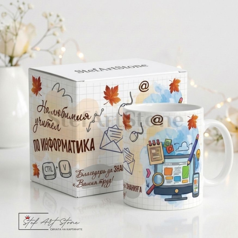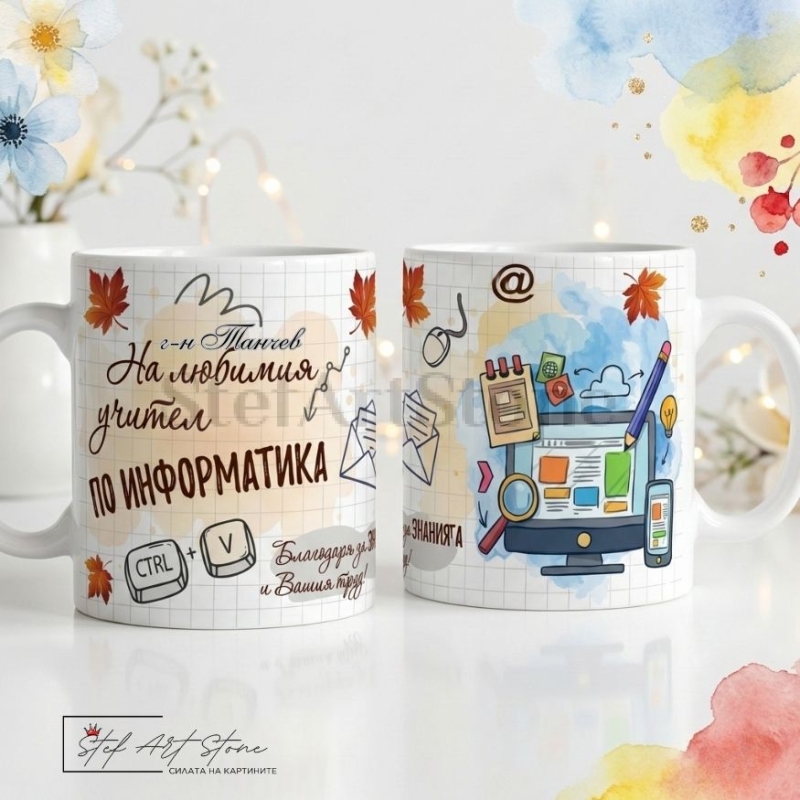 Учителите по информатика са нашите водачи в дигиталния свят! Ако търсите съвременен, стилен и оригинален подарък за учител по ИТ, тази тематична персонализирана чаша с име е абсолютното попадение, с което ще покажете своето уважение.