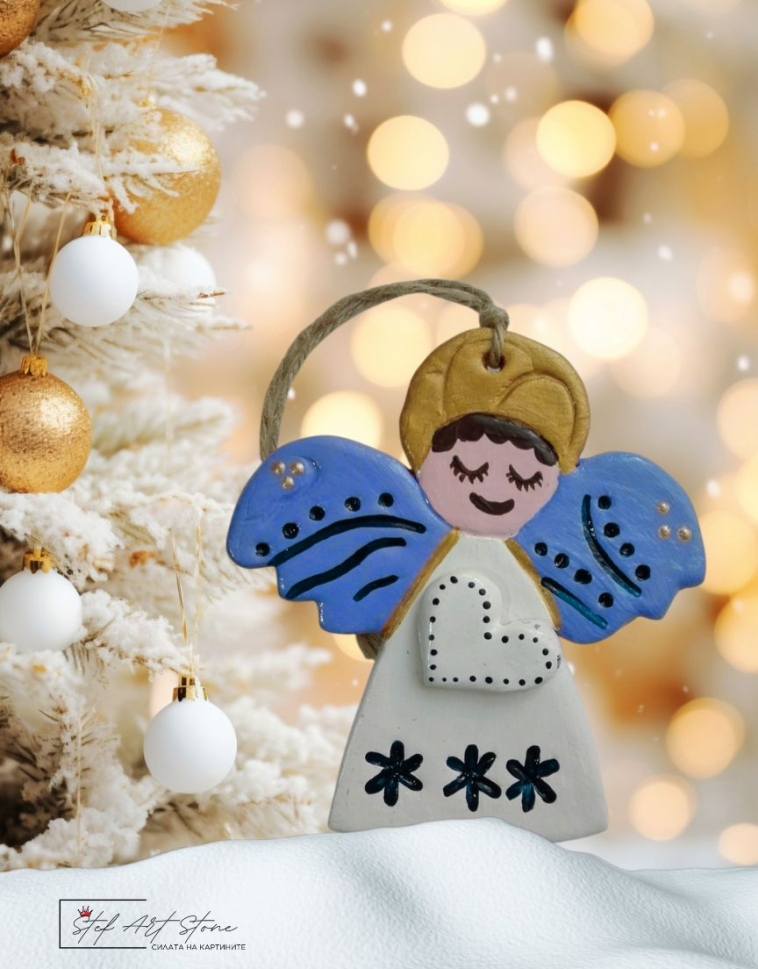 ТОП ХИТ! Ръчно Изработен Коледен Ангел със Светлосини Крила ($12$ см) - Арт Украса