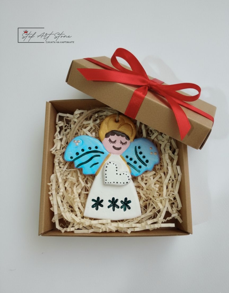 - 🎁 $100\%$ Уникален ръчно изработен ангел със светлосини крила.