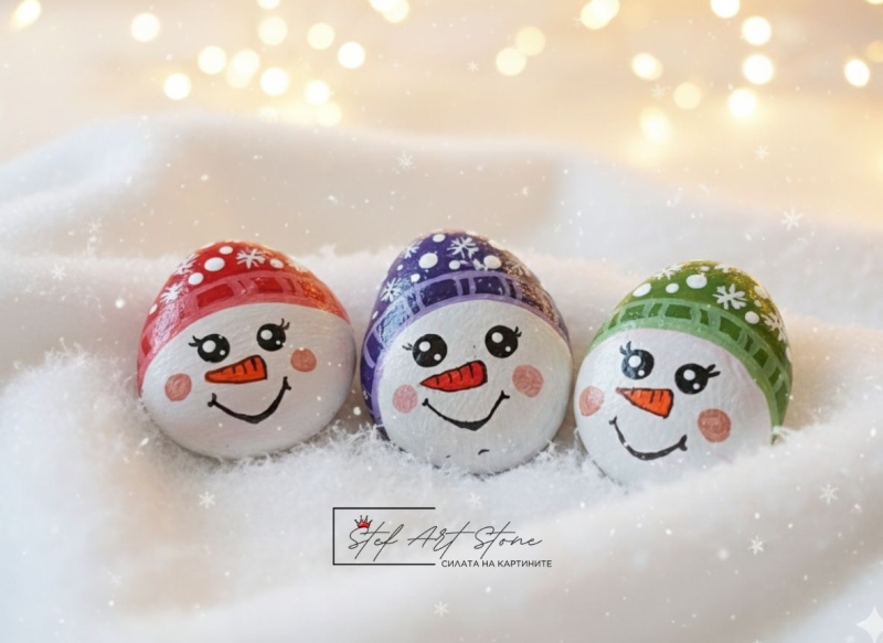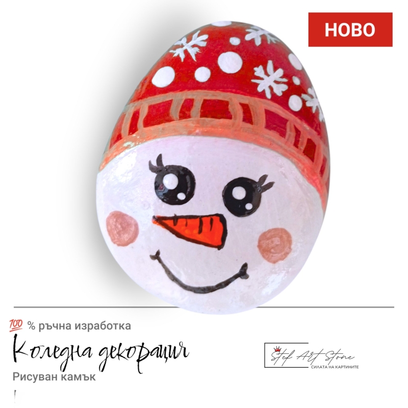 Ръчно рисуван коледен камък Снежен човек | Stef Art Stone
