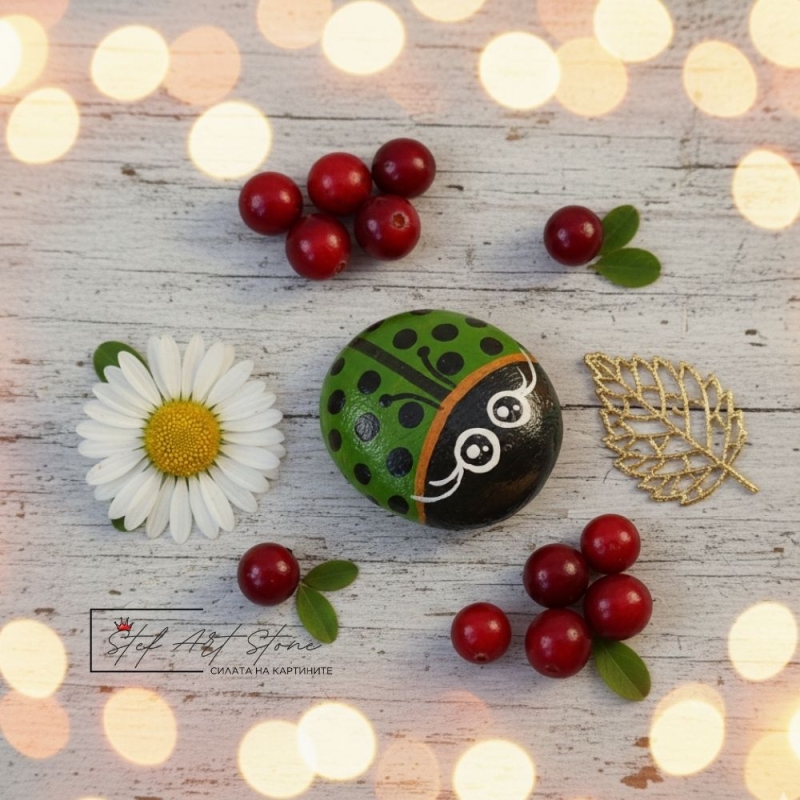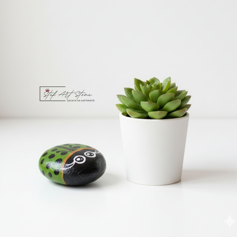 Изберете зелената калинка от Stef Art Stone, ако искате нещо различно – символ на възраждане и вътрешен мир, изработен с любов и внимание към всеки детайл.