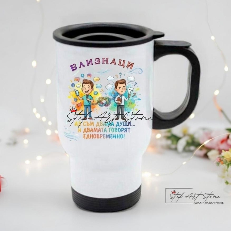Термо Чаша Зодия Близнаци – "Аз съм двама души" (За Път и Кола 500 мл)