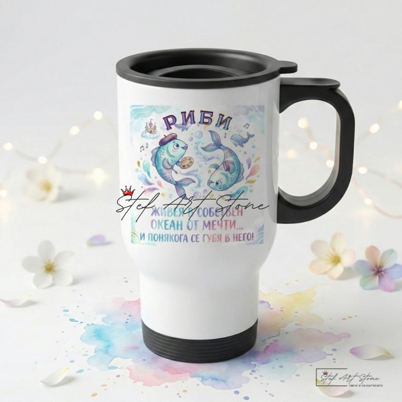 Термо Чаша Зодия Риби – "Океан от Мечти" (Чаша за Път и Кола)